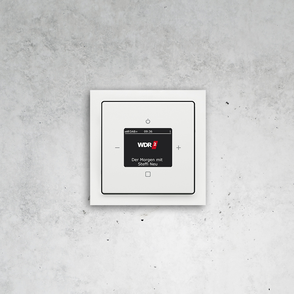 unterschiedlichen Ausführungen. Das Radio integriert sich nahezu unsichtbar in den Raum und ist einfach mit allen Busch-Jaeger Schalterserien kompatibel.